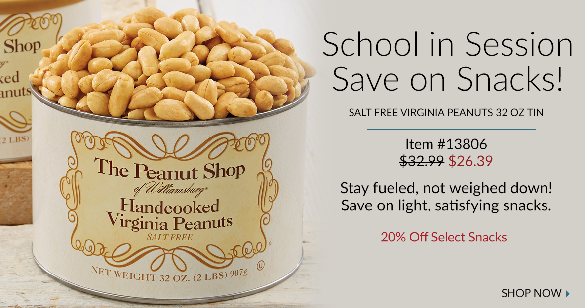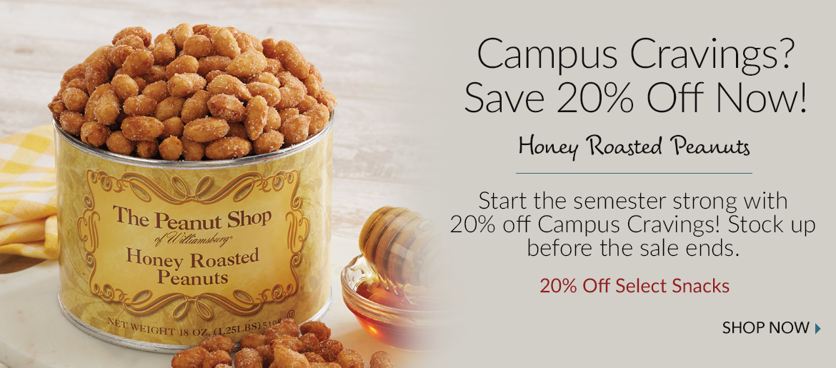 At The Peanut Shop of Williamsburg, we have been carefully selecting and hand roasting the finest gourmet peanuts in Virginia for 50 years. After all these years we still honor the same traditional recipe, roasting the "cream of the crop" super extra-large peanuts in small batches according to our "gold standard"... providing our customers with peanuts that are unique, distinctive and deliciously crisp. In fact, only 3% of all Virginia Peanuts meet the strict standards of the highest market-grade that we use. For more than four decades, the simple goodness of our peanut has changed very little. Not only are they simply good, they are simply healthy - something our peanut lovers have suspected for years. Feast with your eyes as you browse our site for the most delectable Virginia peanuts, snack mixes, chocolates and seasoned nuts to fit every budget and occasion. And as the giving season approaches, send the finest nuts and holiday nut gifts from The Peanut Shop, delivered to you and your friends, family and business associates - and with free shipping... what's not to love!